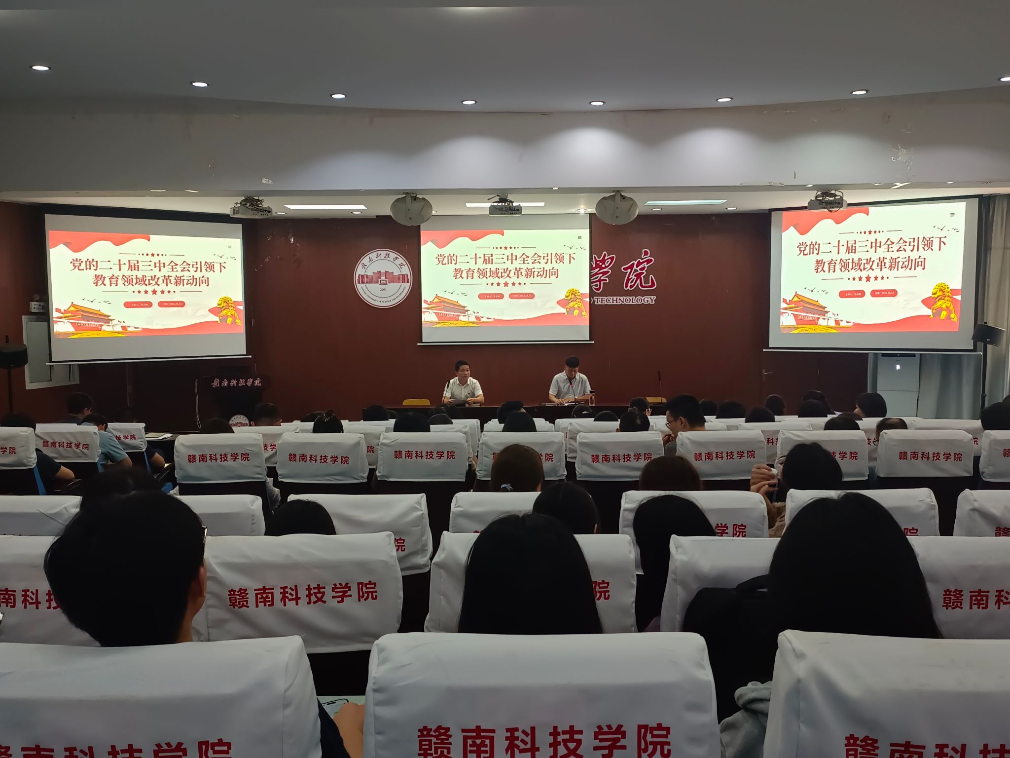 本网讯:10月15日下午,为进一步发挥先进典型的示范引领作用,公司党委邀请2024年江西省“新时代赣鄱先锋”葛志财老师在新民楼报告厅作题为《党的二十届三中全会引领下教育领域改革新动向》的专题报告,也作为公司党委“初心讲堂”的第二讲。公司党委书记肖永鸿、副经理钟滨、领导班子成员、全体教职工及员工第一、第二党支部全体同学参加。报告会由肖永鸿主持。