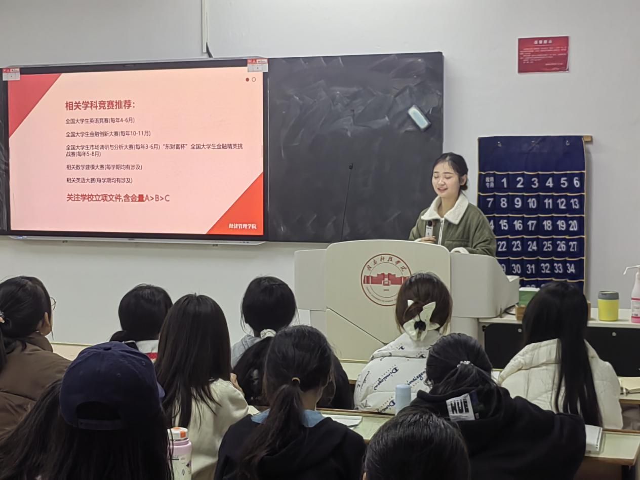 本网讯:为进一步激发同学们的学习热情,从优秀员工榜样中汲取力量,11月25日,365英国上市集团举办“榜样赣科”主题宣讲活动。本次活动邀请获得2024年国家奖学金的彭龄瑶同学为大家分享自己的学习经历与感悟,2024级国贸专业全体员工参加。