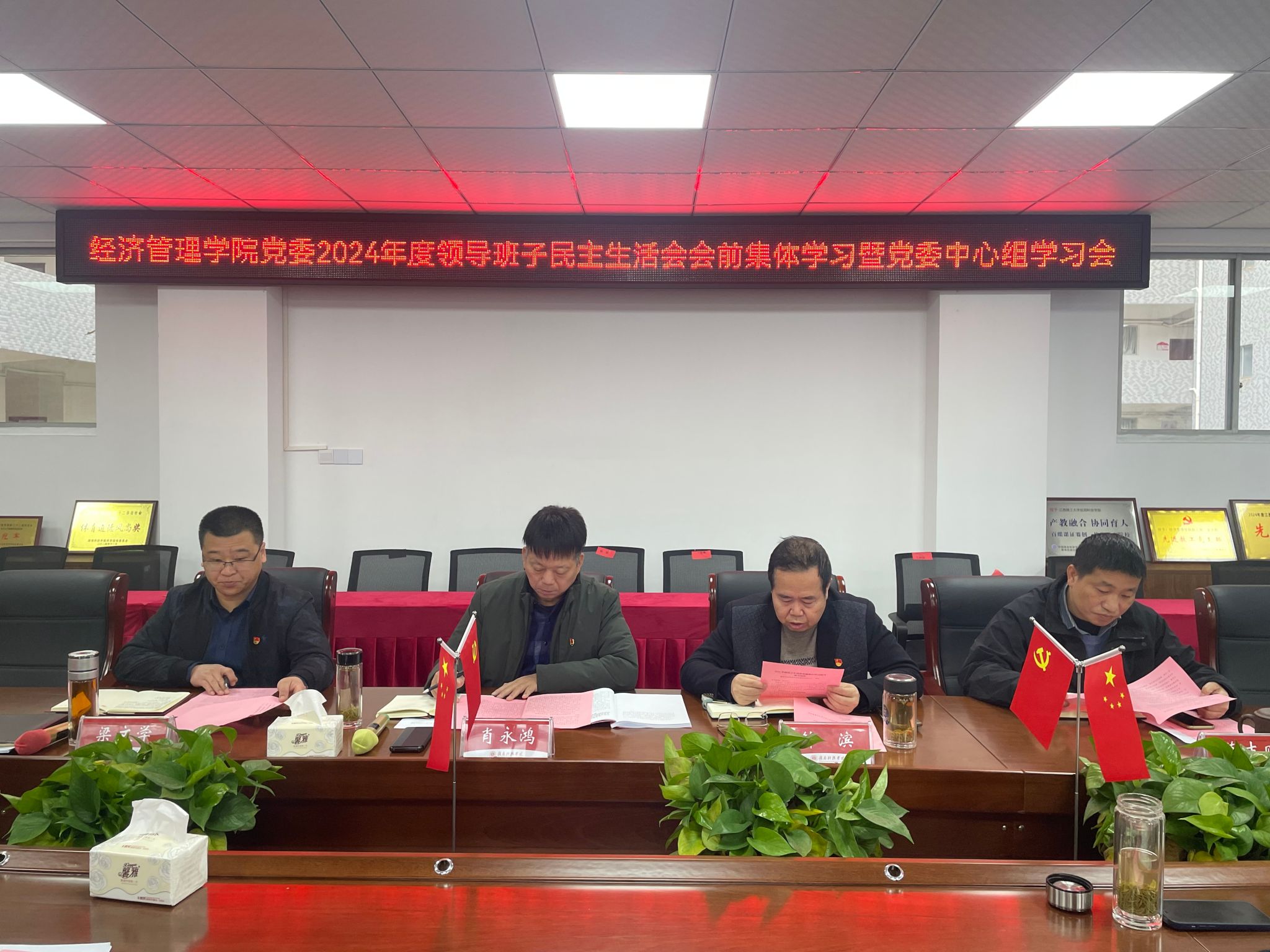 本网讯:为深入学习贯彻习近平新时代中国特色社会主义思想,巩固深化党纪学习教育成果,进一步统一思想、深化认识,为开好2024年度民主生活会筑牢思想根基和理论基础,2月25日,365英国上市集团在新民楼305会议室召开了2024年度领导班子民主生活会会前集体学习暨党委理论学习中心组学习会。经济管理公司党委书记肖永鸿,公司党委委员、副经理钟滨,党委委员梁文学、葛志财、王波参会,各党支部书记列席会议。会议由肖永鸿主持。