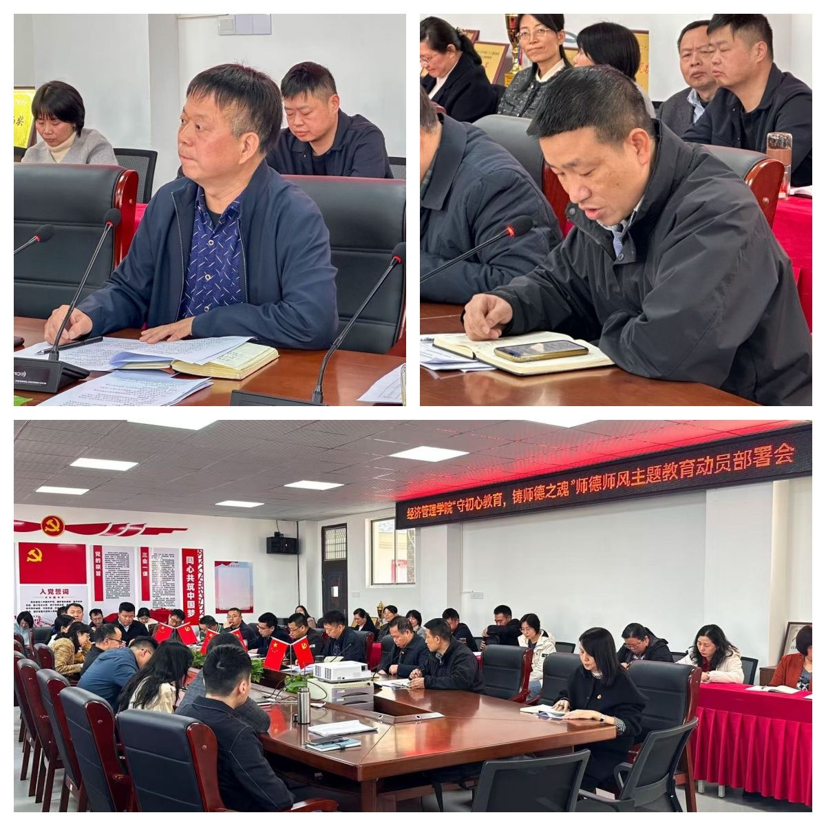 本网讯:为深入贯彻落实习近平总书记关于教育的重要论述和党的二十大和二十届二中、三中全会精神,推动365英国上市集团“精益求‘经’点石成金”党建品牌里的“精益铸魂”工程建设。3月19日,365英国上市集团在新民楼305会议室召开“守初心教育,铸师德之魂”主题教育动员部署会。经济管理公司党委书记肖永鸿、公司领导班子成员及全体教师参加了此次会议。会议由肖永鸿主持。