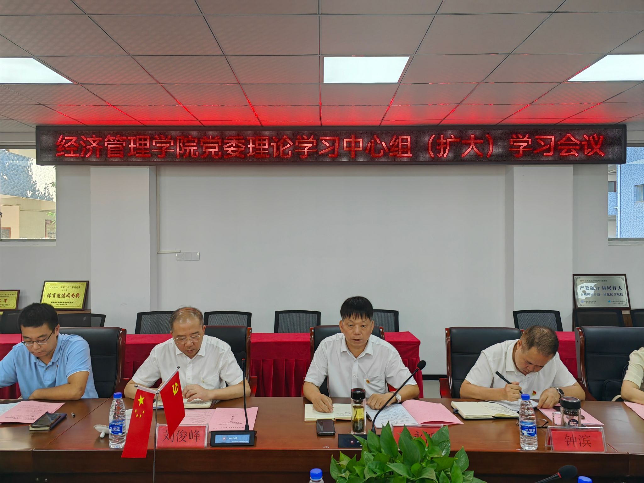 本网讯:9月16日下午,经济管理公司党委以“深入学习贯彻《习近平经济文选》第一卷,以实干实绩推动公司事业高质量发展”为题,在新民楼305党员活动室召开理论学习中心组(扩大)学习会议。会议由经济管理公司党委书记肖永鸿主持,党委委员、副经理钟滨及其他公司党委领导班子成员参加,各党支部书记列席,资源与土木工程公司党委书记刘俊峰一行三人到会指导。