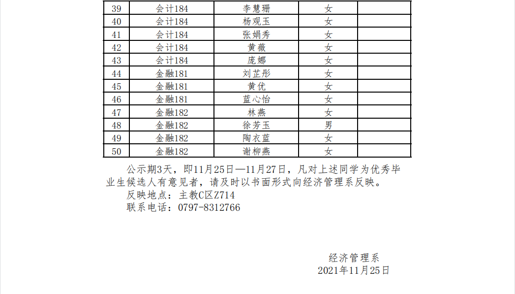经济管理系2022届优秀毕业生初评结果公示