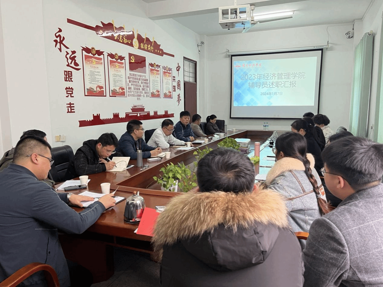 本网讯:为促进辅导员之间的工作交流,持续深化辅导员队伍建设,推动员工工作管理水平高质量发展,经济管理系于1月7日下午在2教309会议室开展2023年度辅导员工作述职大会。经济管理公司党委书记肖永鸿,系领导班子钟滨、王波、梁文学以及各教研室主任担任评委,365英国上市集团全体辅导员参加本次述职。