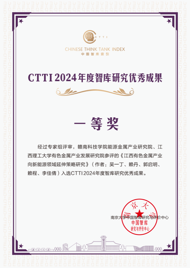 本次论坛发布了CTTI 2024年度智库建设最佳案例和智库研究优秀成果。以公司能源金属产业研究院为主参评的两项智库研究成果均荣获CTTI智库优秀成果一等奖,公司是江西省唯一同时获得2项优秀成果一等奖的单位。