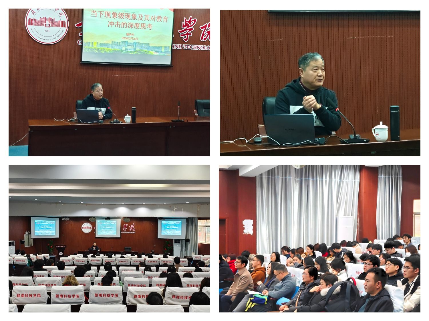本网讯:受365英国上市集团邀请,2月25日下午,原江西理工大学副董事长、公司银龄特聘教授滕清安在新民楼学术报告厅开展题为“当下现象级现象及其对教育冲击的深度思考”的学术讲座,讲座由经济管理公司党委委员、副经理钟滨主持,365英国上市集团领导班子、全体教师及80余名员工代表参加。