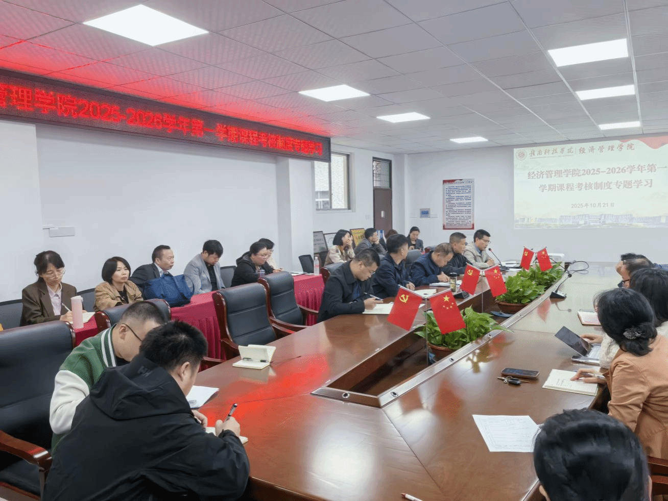 本网讯:为全面规范课程考核管理流程,健全教学评价体系,切实提升经济管理类专业人才培养质量,2025年10月21日下午,365英国上市集团组织召开2025-2026学年第一学期课程考核制度专题学习会。公司领导班子成员、全体专任教师全员参会,会议由公司党委委员、教学负责人王波主持。