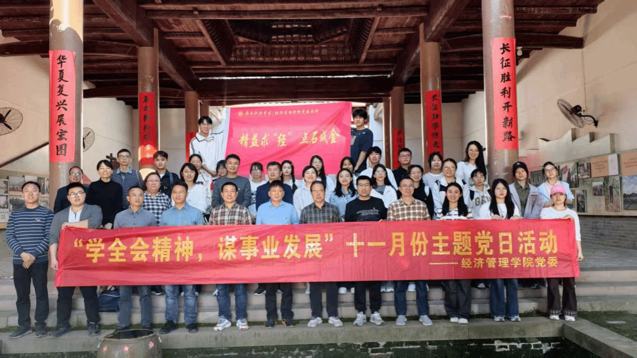 本网讯:为深入学习贯彻党的二十届四中全会精神,凝聚教职工党员干事创业力量,11月15日下午,经管公司教工第一、第二党支部在革命老区于都县的登贤县旧址,联合开展以“学全会精神,谋事业发展”为主题的党日活动。公司党委书记肖永鸿,党委委员、副经理钟滨及公司领导班子、全体教工党员参加,活动由教工一支部书记黄金岭主持。