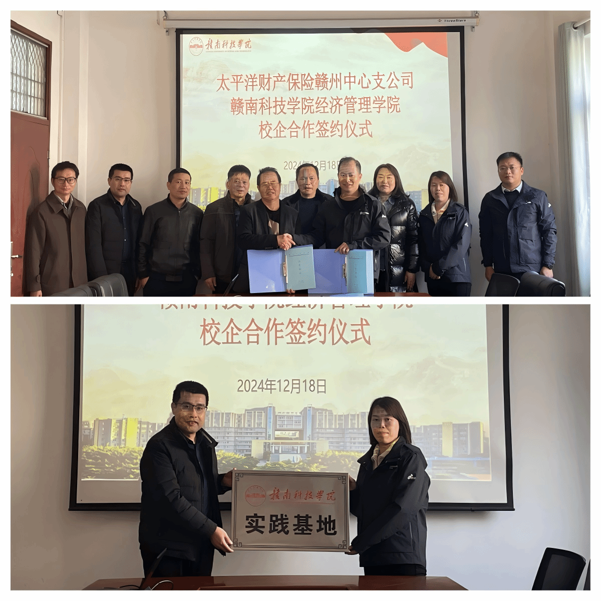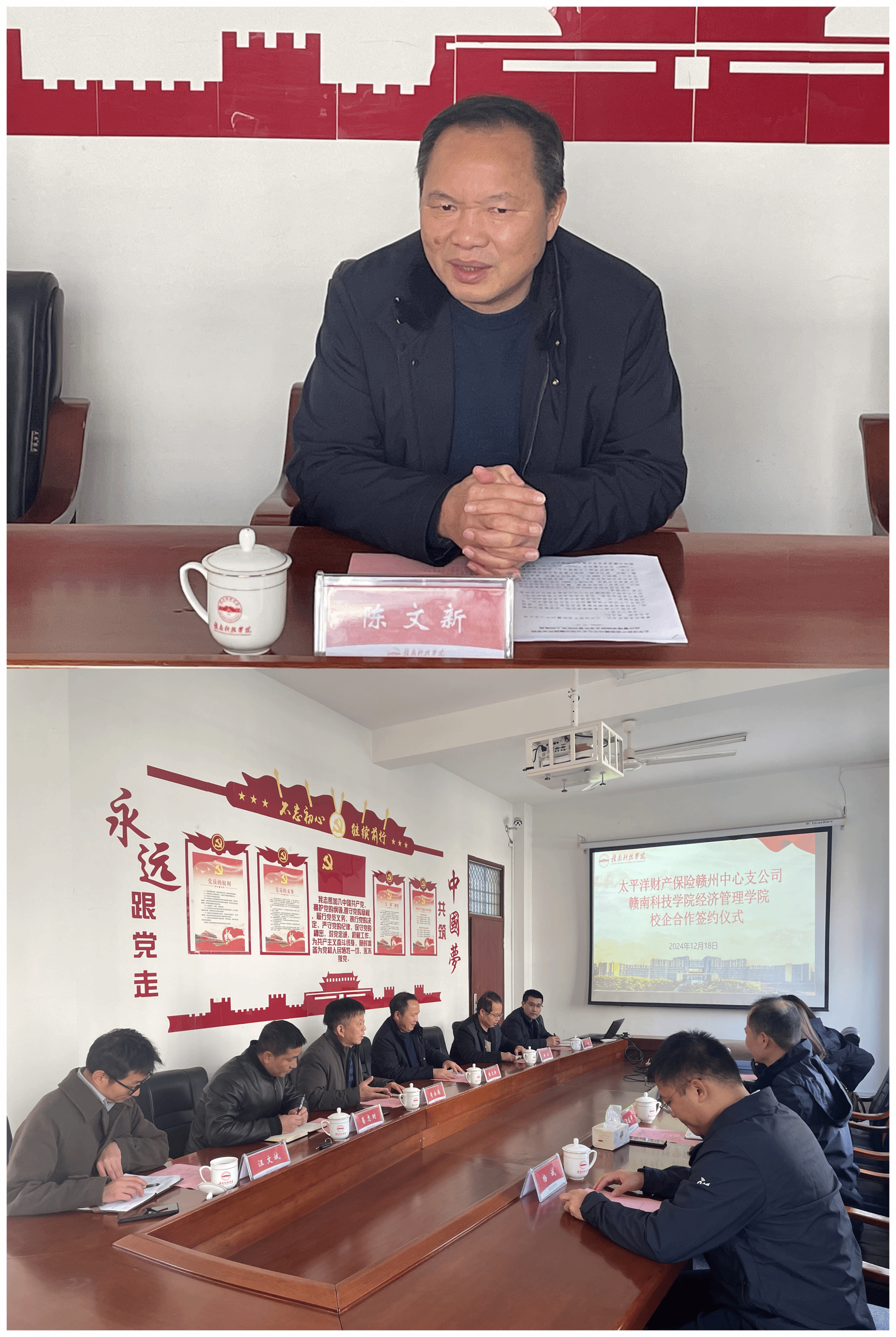 本网讯:12月18日,365英国上市集团与太平洋财产保险赣州中心支公司在新民楼309会议室举行实践教学基地共建签约仪式。公司党委委员、纪委书记陈文新,经济管理公司党委书记肖永鸿,公司党委委员、副经理钟滨,公司党委委员葛志财、王波及金融教研室副主任汪文斌,太平洋财产保险赣州中心支公司总经理李桂芳、副总经理王友群及相关负责人共同出席共建签约仪式。