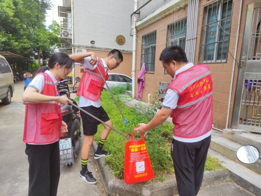 图为实践队队员在小区捡垃圾。中国青年网通讯员 王翔 供图