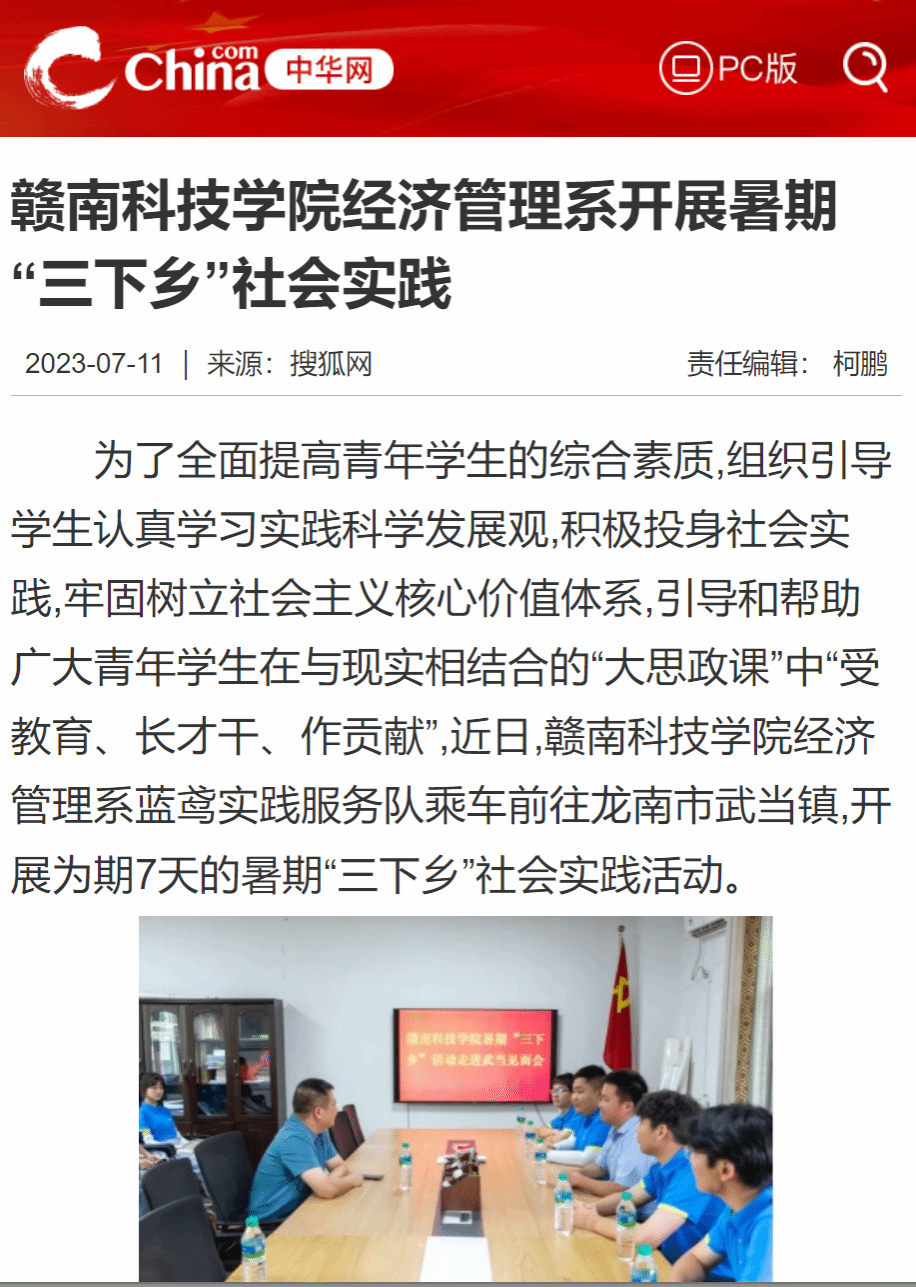 中华网7月11日载:为了全面提高青年员工的综合素质,组织引导员工认真学习实践科学发展观,积极投身社会实践,牢固树立社会主义核心价值体系,引导和帮助广大青年员工在与现实相结合的“大思政课”中“受教育、长才干、作贡献”,近日,365英国上市集团经济管理系蓝鸢实践服务队乘车前往龙南市武当镇,开展为期7天的暑期“三下乡”社会实践活动。