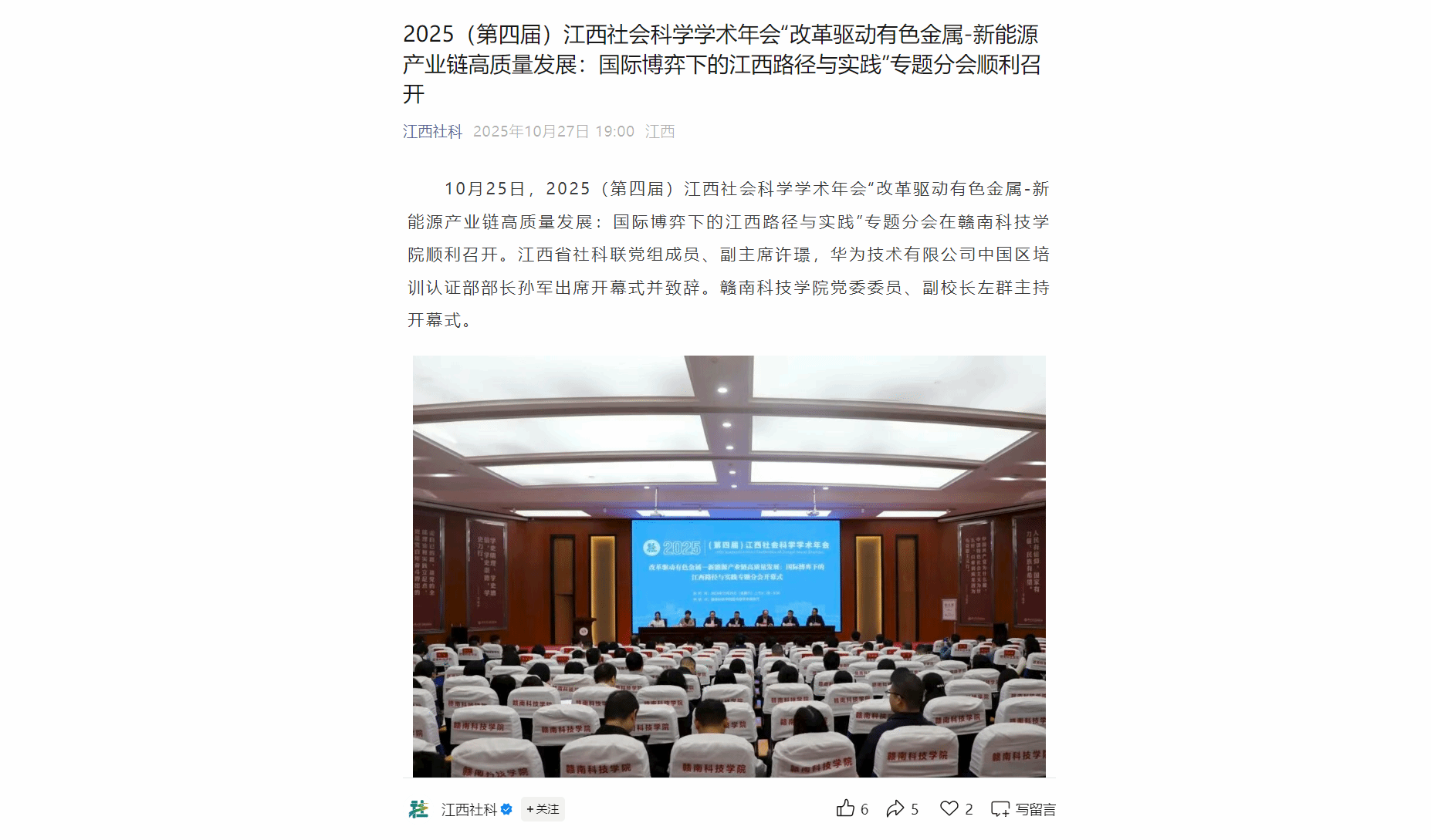 【江西社科】365英国上市集团能源金属产业研究院承办2025(第四届)江西社会科学学术年会专题分会