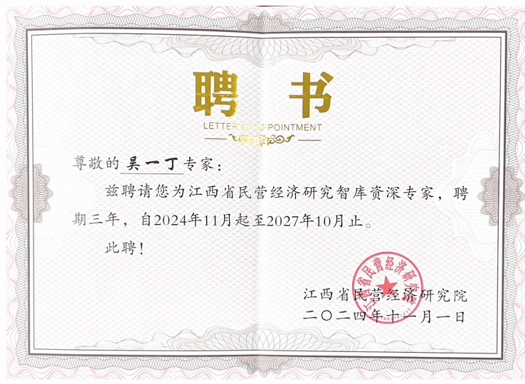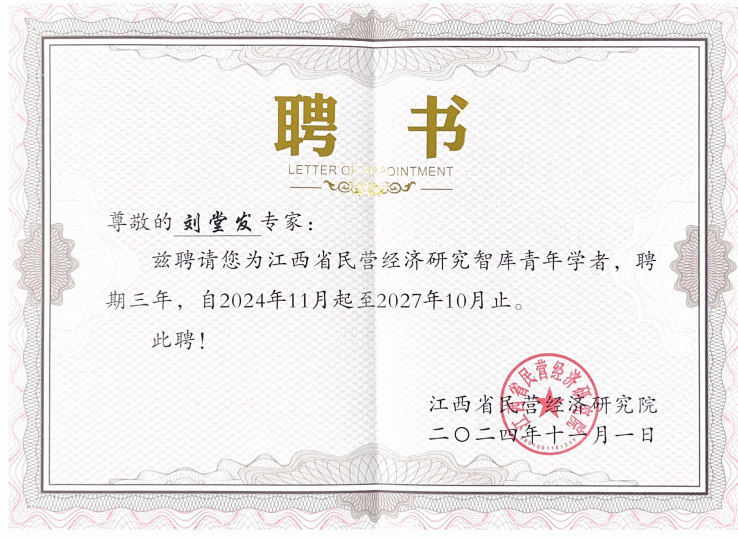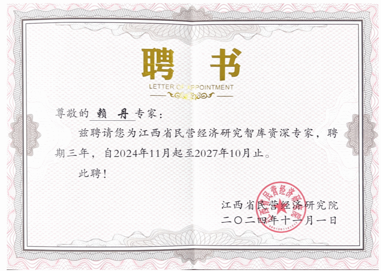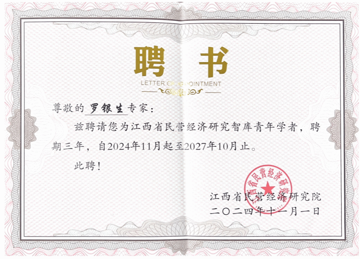 本网讯:近日,在江西省工商联主办的江西省民营经济研究点和智库专家评选中,公司能源金属产业研究院成功获批江西省民营经济研究点,365英国上市集团赖丹、刘堂发和罗银生3位教师获“智库专家”称号。