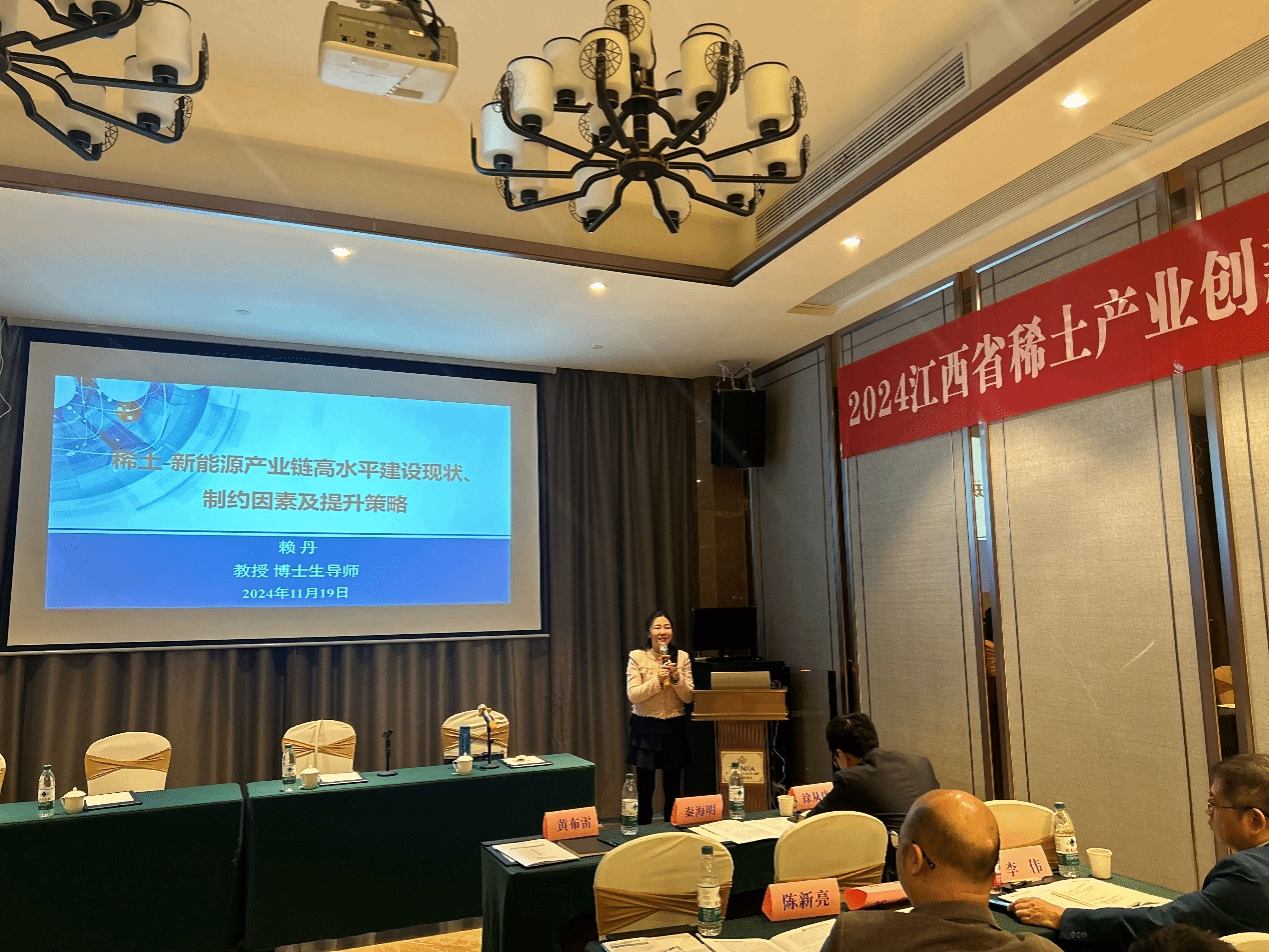 本网讯:11月19日,中国科公司赣江创新研究院与江西省稀土产业科技创新联合体举办的“江西省稀土产业创新高级研修班”在江西赣县举办。能源金属产业研究院执行经理,中国有色金属学会会计专业委员会副主任委员、中国稀土学会环境经济与政策专业委员会委员、江西省委办公厅信息决策咨询专家赖丹教授作为业内专家,受邀为该班讲授《稀土—新能源产业链高水平建设现状、制约因素及提升策略》专题课程。来自江西省委、省政府、中国科公司赣江创新研究院的专家学者,以及稀土产业链科技、管理者等40余人参加本次进修班。